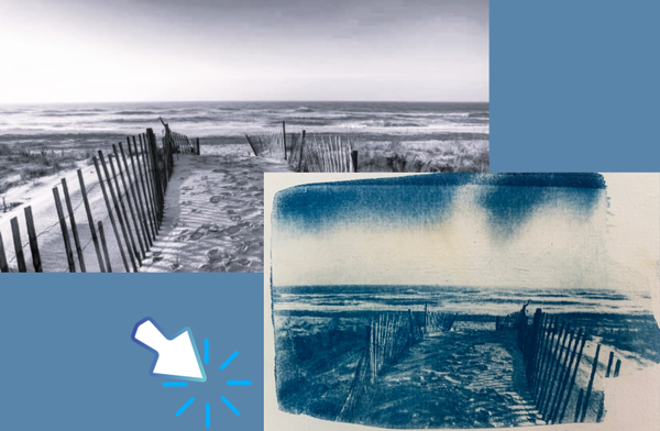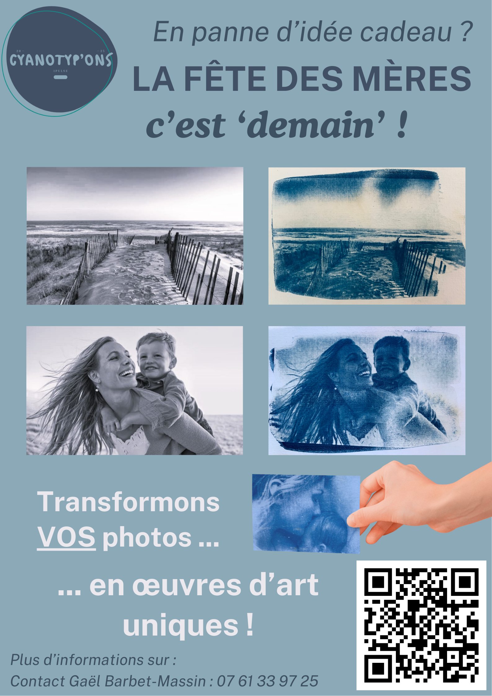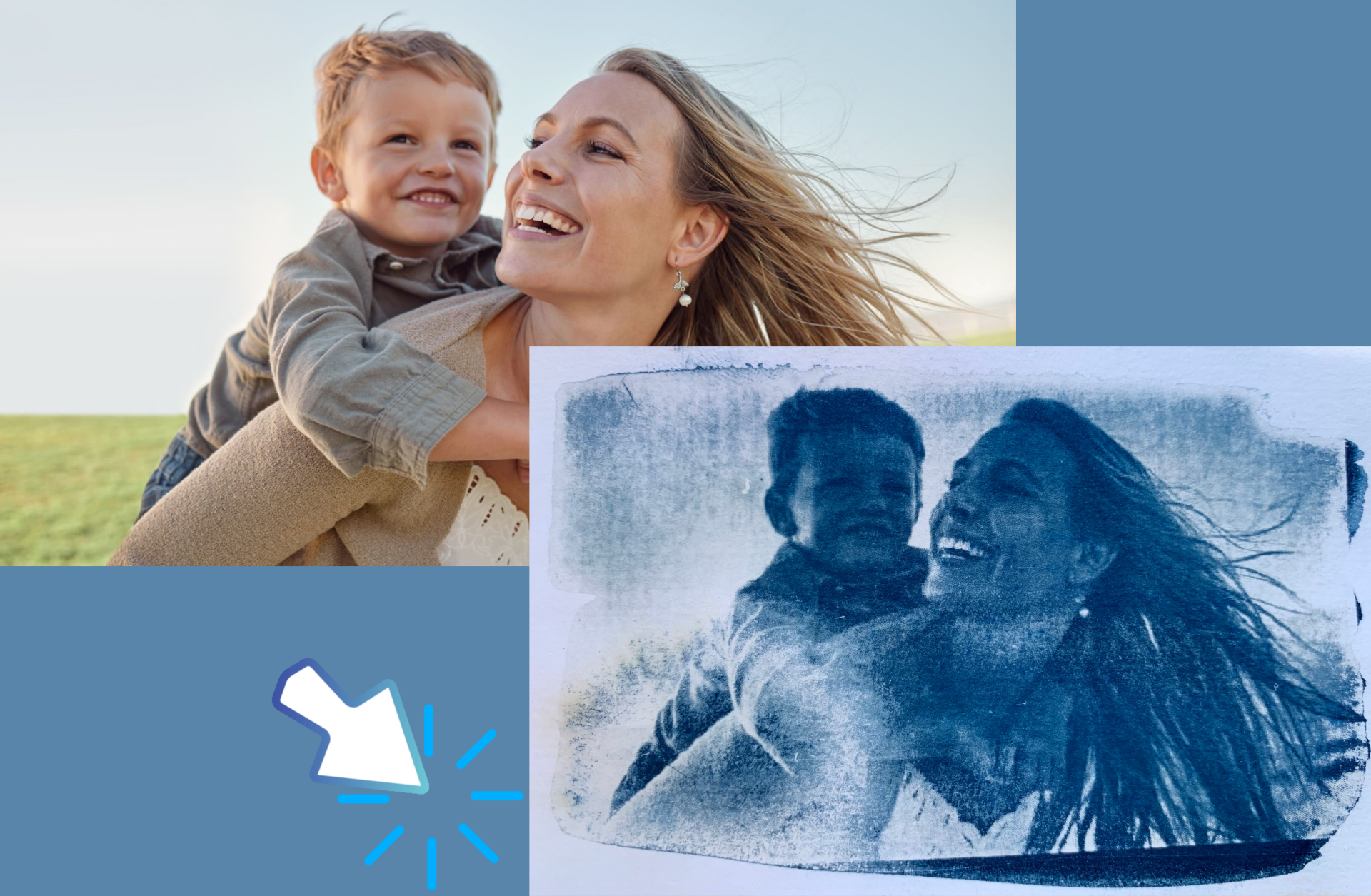 Sur base de votre photo, nous créons une photo cyanotypée unique, à votre image, l'encadrement n'est pas inclu.